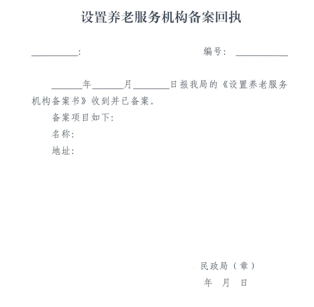 (一)養老機構完成法人登記后即可開展服務活動,并應當立即向所在地民政局養老服務部門備案,真實、準確、完整地提供備案信息及相關材料,填寫《設置養老機構備案書》和《設置養老機構備案承諾書》。備案材料將作為養老機構享受政府相關扶持補貼政策的重要依據。